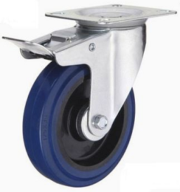 | Koło hamowane fi125mm,felga polipropylenowa,bieżnia gumowa,niebieska,elastyczna,łożysko rolkowe,mocowanie płytka |