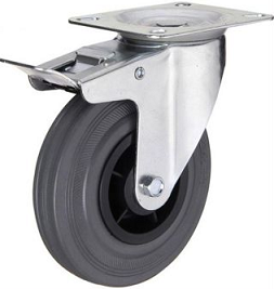 | Koło hamowane fi125mm,felga polipropylenowa,bieżnia gumowa,szara,łożysko rolkowe,mocowanie płytka |