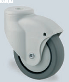 | Koło skrętne fi125mm,felga poliamidowa,bieżnia gumowa,szara,łożysko kulkowe,widelec poliamidowy,mocowanie otwór |