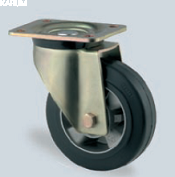 | Koło skrętne fi200mm, piasta aluminiowa, bieżnia gumowa, czarna, łożysko kulkowe, mocowanie płytka. |
