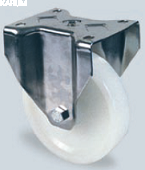 | Koło stałe fi 100mm,nierdzewne,piasta i bieżnia poliamidowa,łożysko ślizgowe,mocowanie płytka |