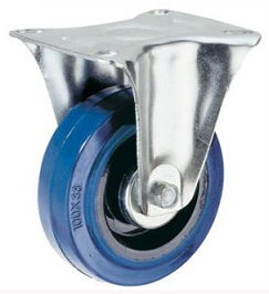 | Koło stałe fi125mm,felga poliamidowa,bieżnia gumowa,elastyczna,niebieska,łożysko rolkowe,mocowanie płytka |