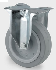 | Koło stałe, fi 125mm,piasta poliamidowa,bieżnia gumowa elastyczna szara,łożysko rolkowe,mocowanie płytka |