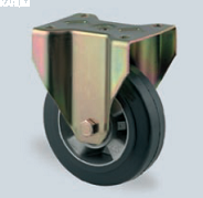 | Koło stałe fi200mm, piasta aluminiowa, bieżnia gumowa, czarna, łożysko kulkowe, mocowanie płytka. |