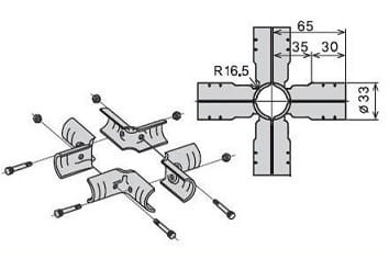 W skład zestawu wchodzą złączki 4xZ2 i cztey komplety łączące (śruba M6x25mm + nakrętka M6 z kołnierzem).